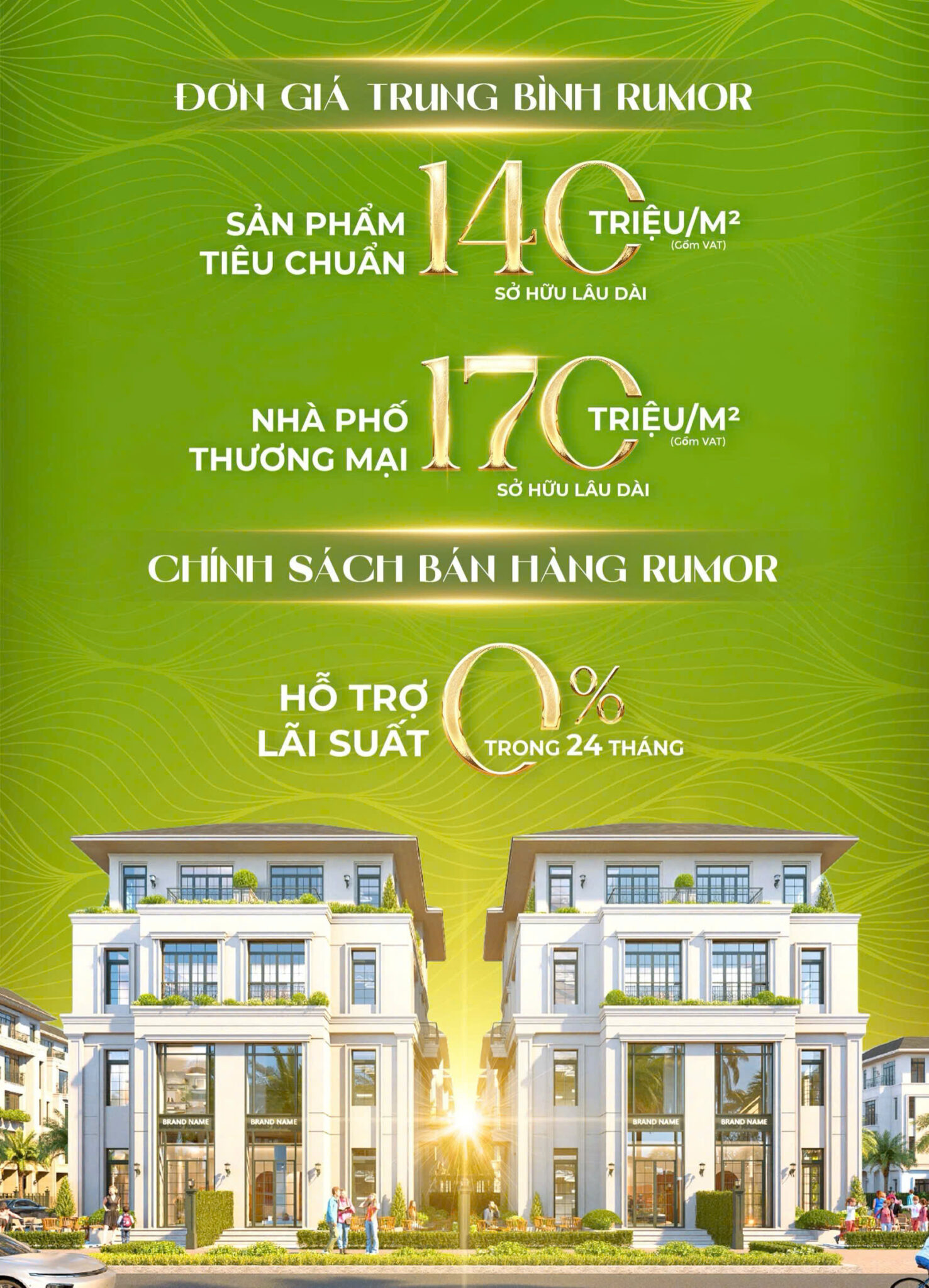 - Shophouse ven hồ: 120 – 150 m²
