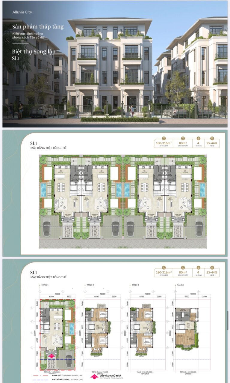 - Biệt thự song lập & đơn lập: thiết kế mở, tận dụng tối đa ánh sáng và gió tự nhiên.