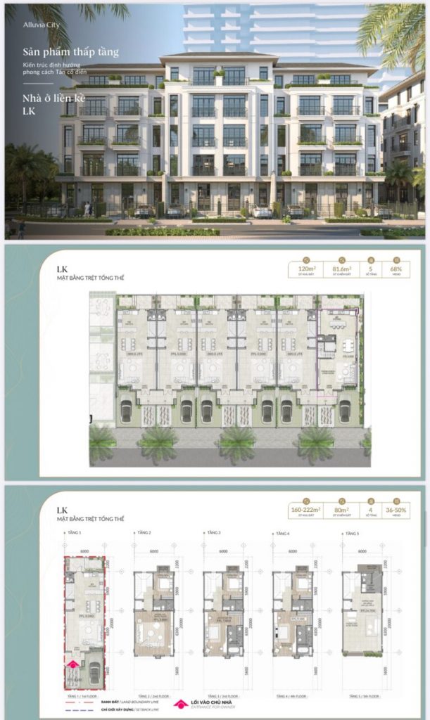 - Nhà liền kề: 96 – 120 m²