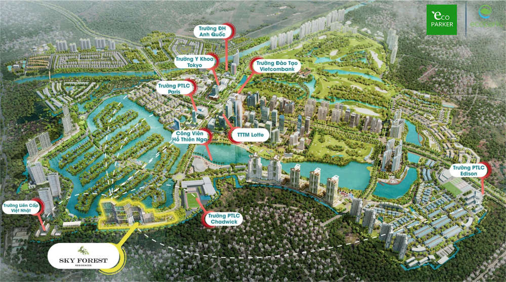 Sky Forest Residences tọa lạc tại cung đường Vịnh Đảo, vị trí đắc địa bao trọn khu biệt thự đảo Ecopark Grand – khu đô thị xanh hàng đầu Hà Nội.